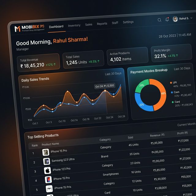 Stop guessing your margins. Mobibix captures the cost of every part used and every device sold to give you a true picture of your profit. With automated dashboards for cash flow and stock value, you're always leading with data.